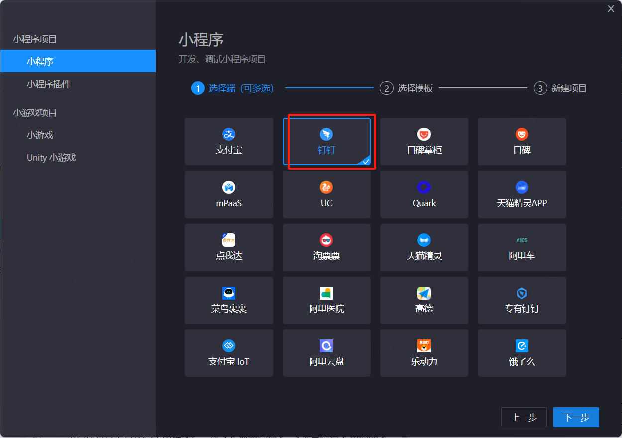 (2)选择钉钉-企业内部应用,路径选择有数小程序代码文件夹,进入小程序发开界面。