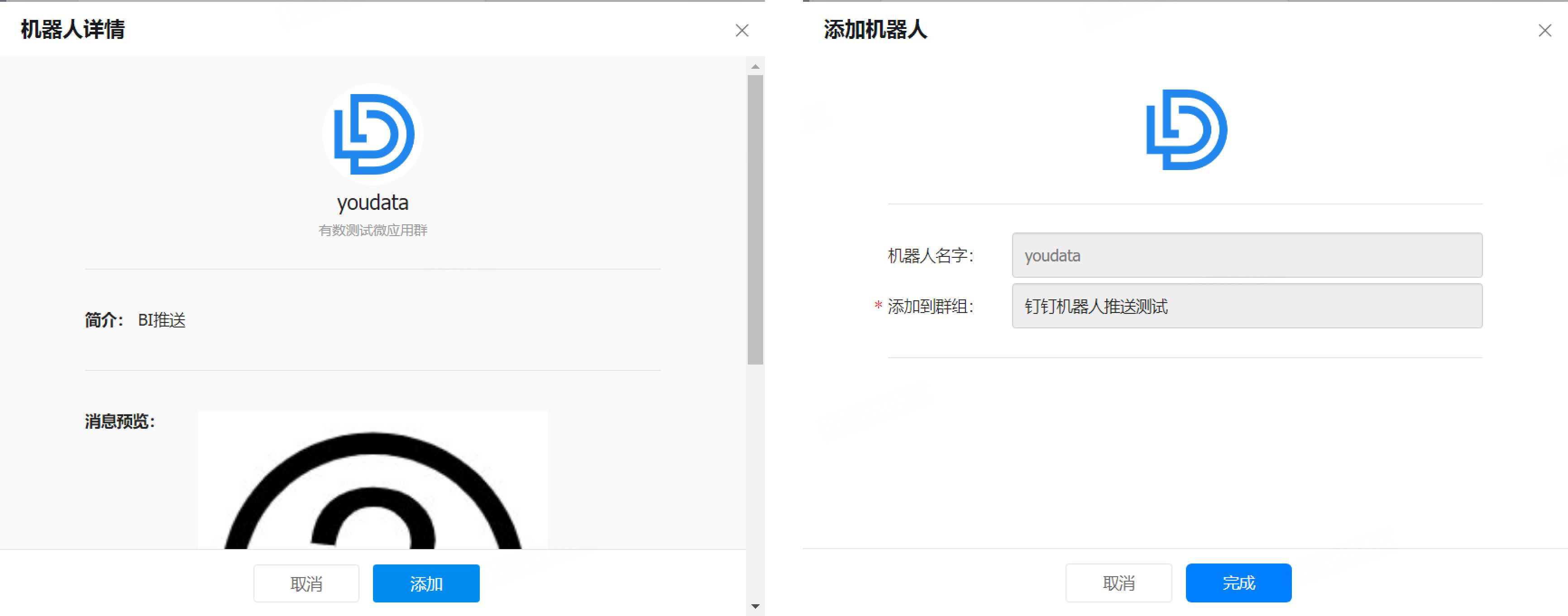 若您需要将报告数据推送至钉钉群,您可以使用机器人配置,将数据推送至钉钉群中。