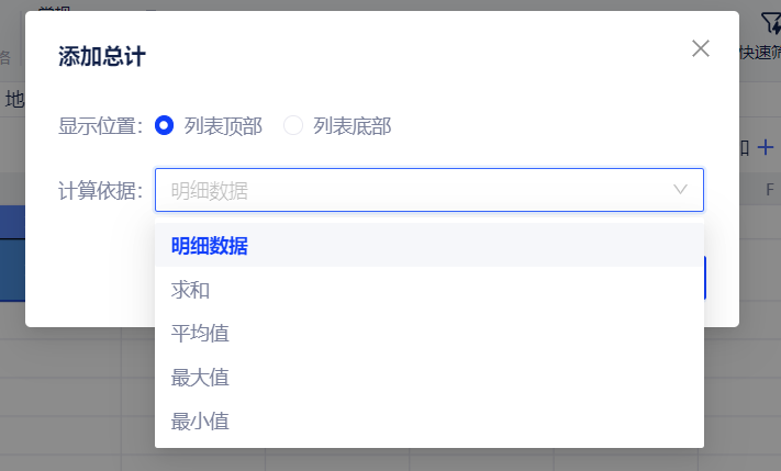 1. 概述2. 快速入门1. 概述明细表可针对度量添加总计。 2. 快速入门(1) 产品入口 鼠标右键单击明细表中度量 --> 添加总计。 (2) 产品功能 支持添加于顶部或底部。 支持基于明细数据求和、平均值、最大值以及最小值。